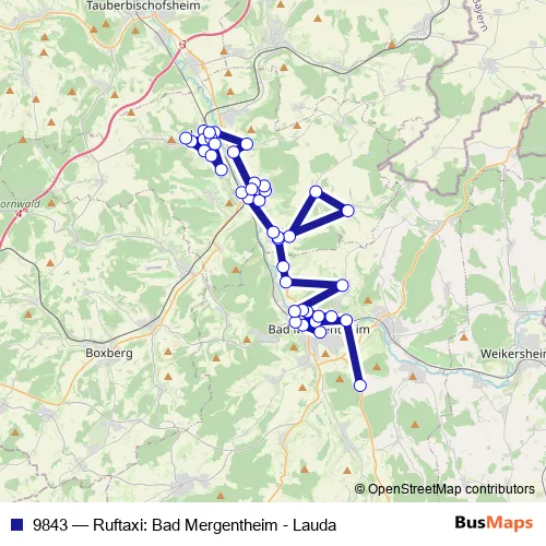 Bus 9843 - Ruftaxi: Bad Mergentheim - Lauda in Bad Mergentheim: Stops & Timetable