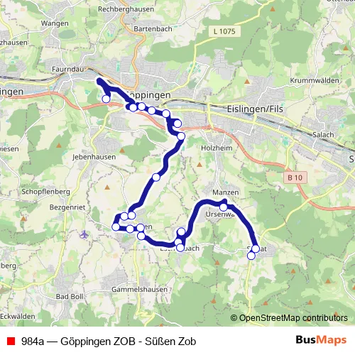 Click here to view the nearest 984a - Göppingen ZOB - Süßen Zob bus stop.