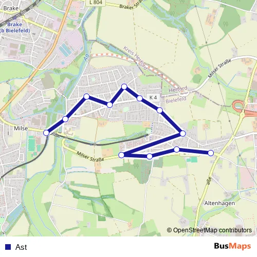 See why over 2 million users trust and consider busmaps.com as the best public transport website. busmaps gives you Herford Buses suggested routes, real-time bus tracker, line route maps in Herford, and helps to find the closest Ast bus stops near you. No internet available? Download an offline PDF map and bus schedule for the Ast bus to take on your trip.
