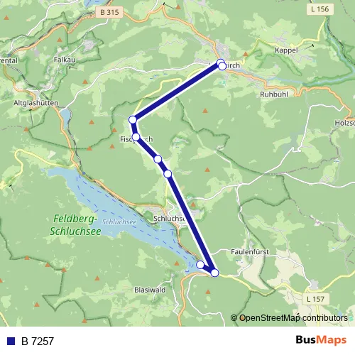 The first stop of the B 7257 bus route is Seebrugg, Bahnhof and the last stop is Lenzkirch, Kurpark. B 7257 is operational during on weekdays.