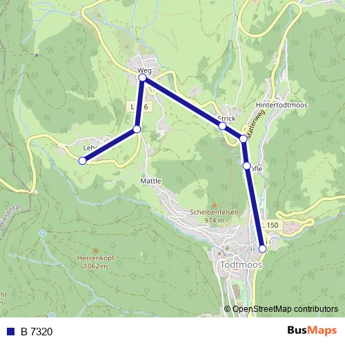 The first stop of the B 7320 bus route is Todtmoos, Lehen and the last stop is Todtmoos, Busbahnhof. B 7320 is operational during on weekdays.
