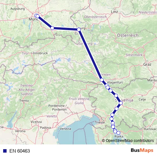Bayerstraße - Südtiroler Platz - Bahnhofplatz - Cesta maršala Tita - Železniška ulica - Delavska cesta - Podhod Bežigrajska vrata - Mejačeva ulica - Kolodvorska cesta - Vojkov drevored - Ulica Vladimira Nazora - Trg kralja Tomislava