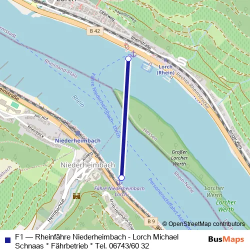 Ferry F1 - Rheinfähre Niederheimbach - Lorch Michael Schnaas * Fährbetrieb * Tel. 06743/60 32: Full Schedule in Niederheimbach