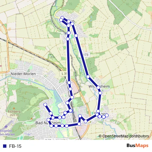 The first stop of the FB-15 bus route is Bad Nauheim Bahnhof and the last stop is Bad Nauheim Kaiserberg. FB-15 is operational during everyday.
