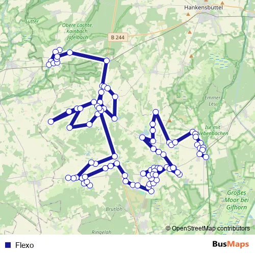 The first stop of the Flexo bus route is Steinhorst (Kr GF), Friedhof and the last stop is Wahrenholz, Bahnhof. Flexo is operational during everyday.