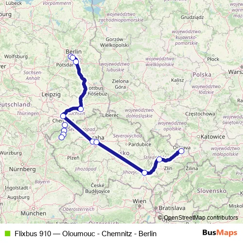 Click here to view the nearest Flixbus 910 - Oloumouc - Chemnitz - Berlin bus stop.