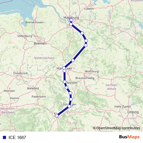 Rail ICE 1687 in Hamburg: Stops & Timetable