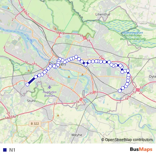 See why over 2 million users trust and consider busmaps.com as the best public transport website. busmaps gives you Bremen Trams suggested routes, real-time bus tracker, line route maps in Bremen, and helps to find the closest N1 tram stops near you. No internet available? Download an offline PDF map and bus schedule for the N1 tram to take on your trip.