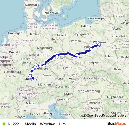 Bus N1222 - Modlin – Wroclaw – Ulm Schedule in Wroclaw