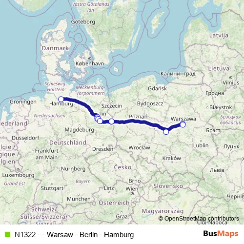 Bus N1322 - Warsaw - Berlin - Hamburg in Berlin: Stops & Timetable