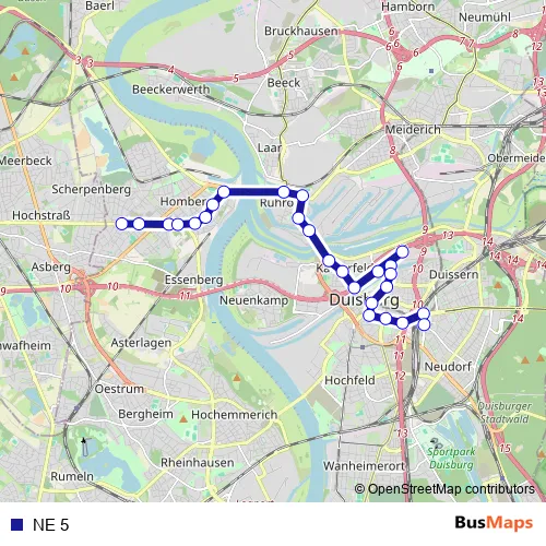 See why over 2 million users trust and consider busmaps.com as the best public transport website. busmaps gives you Duisburg Buses suggested routes, real-time bus tracker, line route maps in Duisburg, and helps to find the closest NE 5 bus stops near you. No internet available? Download an offline PDF map and bus schedule for the NE 5 bus to take on your trip.