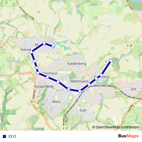 The first stop of the O11 bus route is Mettmann Friedhof Lindenheide and the last stop is Mettmann Hasselbeckstraße. O11 is operational during everyday.