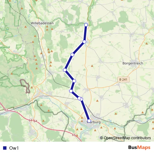 The first stop of the Ow1 bus route is Warburg, Schützenplatz and the last stop is