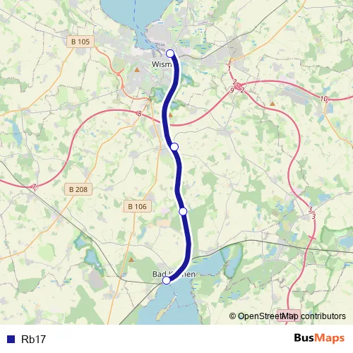 See why over 2 million users trust and consider busmaps.com as the best public transport website. busmaps gives you Wismar Buses suggested routes, real-time bus tracker, line route maps in Wismar, and helps to find the closest Rb17 bus stops near you. No internet available? Download an offline PDF map and bus schedule for the Rb17 bus to take on your trip.