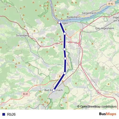 See why over 2 million users trust and consider busmaps.com as the best public transport website. busmaps gives you Mainz Rail Services suggested routes, real-time bus tracker, line route maps in Mainz, and helps to find the closest Rb26 rail stops near you. No internet available? Download an offline PDF map and bus schedule for the Rb26 rail to take on your trip.