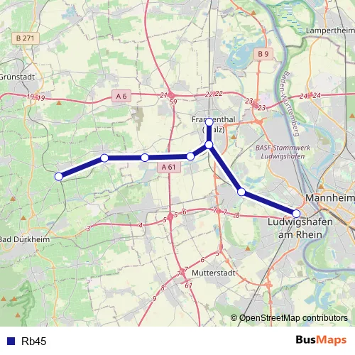 See why over 2 million users trust and consider busmaps.com as the best public transport website. busmaps gives you Frankenthal Buses suggested routes, real-time bus tracker, line route maps in Frankenthal, and helps to find the closest Rb45 bus stops near you. No internet available? Download an offline PDF map and bus schedule for the Rb45 bus to take on your trip.