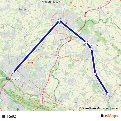 See why over 2 million users trust and consider busmaps.com as the best public transport website. busmaps gives you Herford Buses suggested routes, real-time bus tracker, line route maps in Herford, and helps to find the closest Re82 bus stops near you. No internet available? Download an offline PDF map and bus schedule for the Re82 bus to take on your trip.