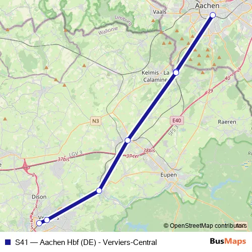 Rail S41 - Aachen Hbf (DE) - Verviers-Central Schedule in Verviers