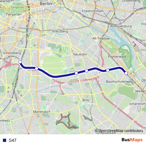 See why over 2 million users trust and consider busmaps.com as the best public transport website. busmaps gives you Berlin Rail Services suggested routes, real-time bus tracker, line route maps in Berlin, and helps to find the closest S47 rail stops near you. No internet available? Download an offline PDF map and bus schedule for the S47 rail to take on your trip.