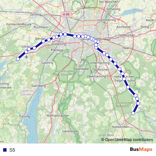 See why over 2 million users trust and consider busmaps.com as the best public transport website. busmaps gives you Munich Rail Services suggested routes, real-time bus tracker, line route maps in Munich, and helps to find the closest S5 rail stops near you. No internet available? Download an offline PDF map and bus schedule for the S5 rail to take on your trip.