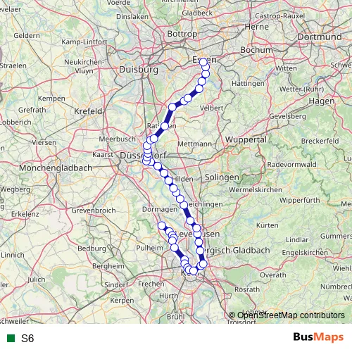 See why over 2 million users trust and consider busmaps.com as the best public transport website. busmaps gives you Duesseldorf Rail Services suggested routes, real-time bus tracker, line route maps in Duesseldorf, and helps to find the closest S6 rail stops near you. No internet available? Download an offline PDF map and bus schedule for the S6 rail to take on your trip.