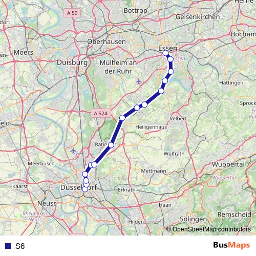 See why over 2 million users trust and consider busmaps.com as the best public transport website. busmaps gives you Duesseldorf Buses suggested routes, real-time bus tracker, line route maps in Duesseldorf, and helps to find the closest S6 bus stops near you. No internet available? Download an offline PDF map and bus schedule for the S6 bus to take on your trip.