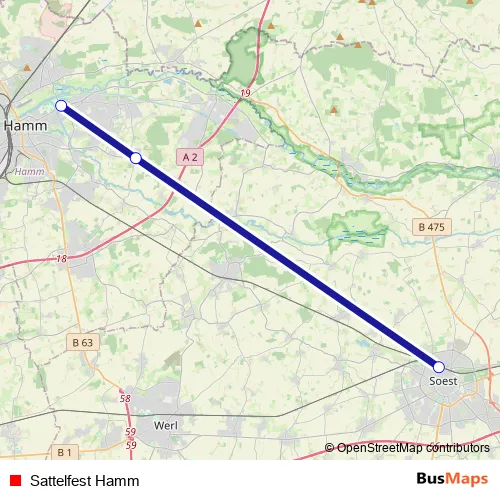The first stop of the Sattelfest Hamm bus route is Soest, Bahnhof F and the last stop is Hamm, Bad Hamm. Sattelfest Hamm (Sattelfest Hamm) is operational during everyday.