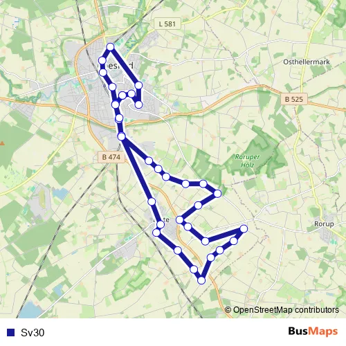 The first stop of the Sv30 bus route is Coesfeld, Fr.-v.-Stein-Schule and the last stop is Coesfeld, Fr.-v.-Stein-Schule. Sv30 is operational during on weekdays.