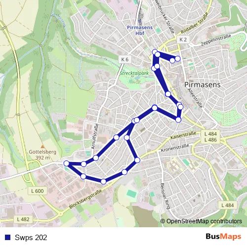 See why over 2 million users trust and consider busmaps.com as the best public transport website. busmaps gives you Pirmasens Buses suggested routes, real-time bus tracker, line route maps in Pirmasens, and helps to find the closest Swps 202 bus stops near you. No internet available? Download an offline PDF map and bus schedule for the Swps 202 bus to take on your trip.
