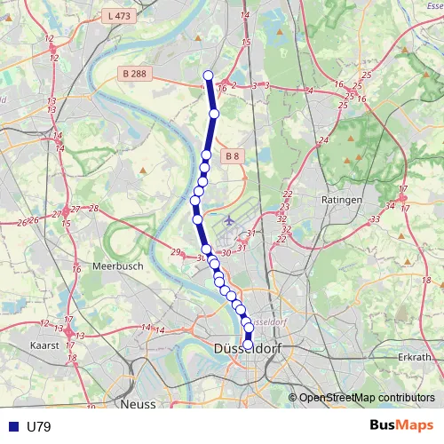 See why over 2 million users trust and consider busmaps.com as the best public transport website. busmaps gives you Duesseldorf Buses suggested routes, real-time bus tracker, line route maps in Duesseldorf, and helps to find the closest U79 bus stops near you. No internet available? Download an offline PDF map and bus schedule for the U79 bus to take on your trip.