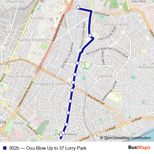Bus 002b - Osu Blow Up to 37 Lorry Park: Full Schedule in Accra