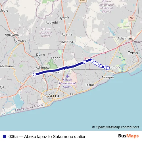 Bus 006a - Abeka lapaz to Sakumono station in Accra: Stops & Timetable