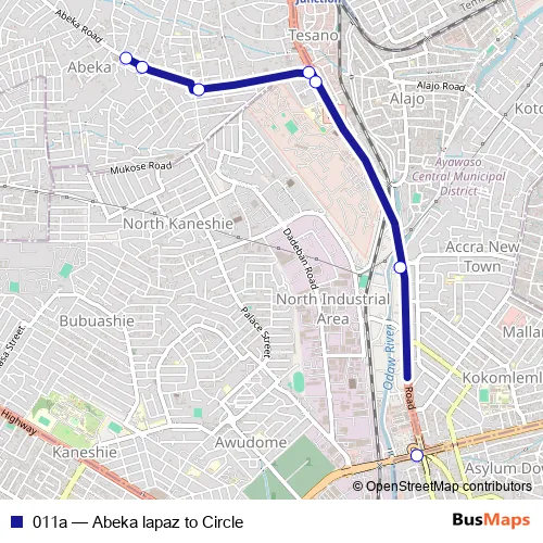 Click here to view the nearest 011a - Abeka lapaz to Circle bus stop.