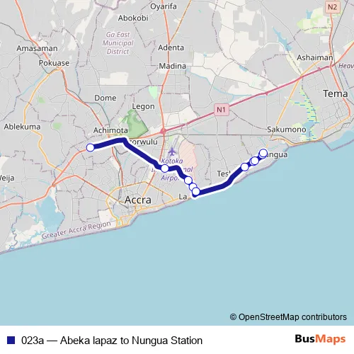 Bus 023a - Abeka lapaz to Nungua Station: Full Schedule in Accra
