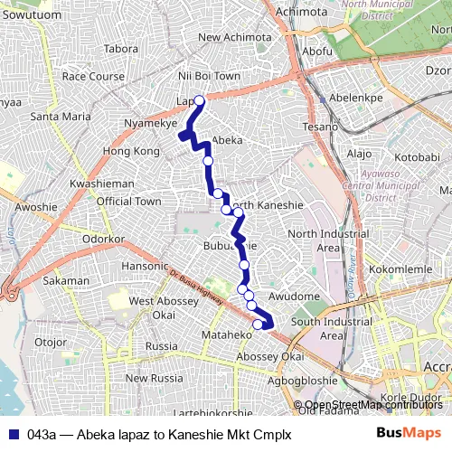 Click here to view the nearest 043a - Abeka lapaz to Kaneshie Mkt Cmplx bus stop.