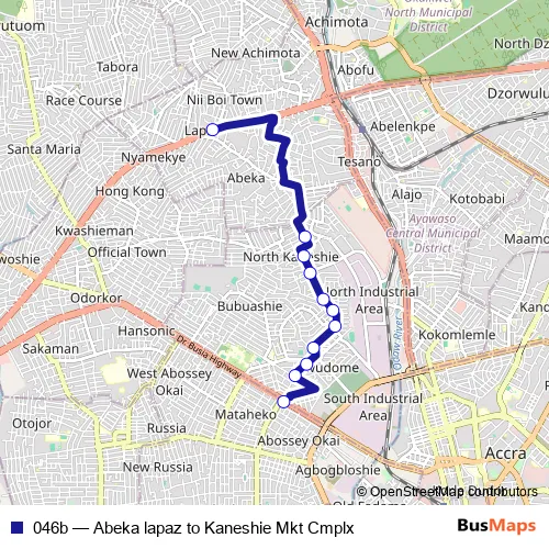Click here to view the nearest 046b - Abeka lapaz to Kaneshie Mkt Cmplx bus stop.