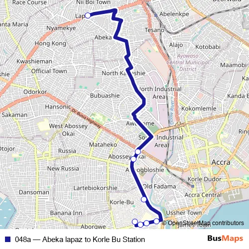 See why over 2 million users trust and consider busmaps.com as the best public transport website. busmaps gives you Accra Buses suggested routes, real-time bus tracker, line route maps in Accra, and helps to find the closest 048a bus stops near you. No internet available? Download an offline PDF map and bus schedule for the 048a bus to take on your trip.