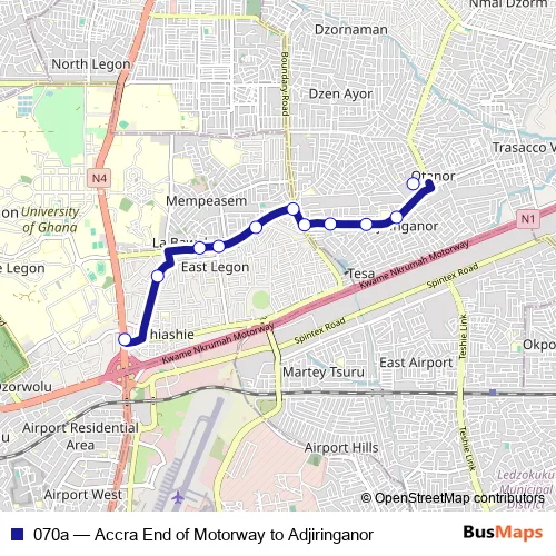 See why over 2 million users trust and consider busmaps.com as the best public transport website. busmaps gives you Accra Buses suggested routes, real-time bus tracker, line route maps in Accra, and helps to find the closest 070a bus stops near you. No internet available? Download an offline PDF map and bus schedule for the 070a bus to take on your trip.