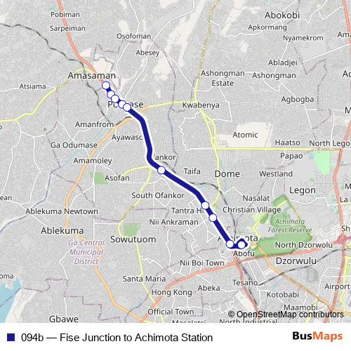 See why over 2 million users trust and consider busmaps.com as the best public transport website. busmaps gives you Accra Buses suggested routes, real-time bus tracker, line route maps in Accra, and helps to find the closest 094b bus stops near you. No internet available? Download an offline PDF map and bus schedule for the 094b bus to take on your trip.