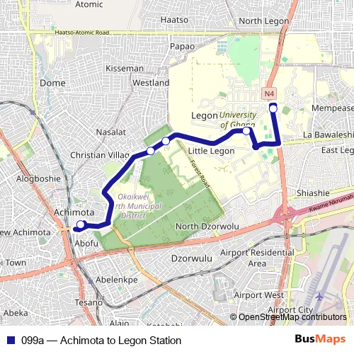 Bus 099a - Achimota to Legon Station: Full Schedule in Accra