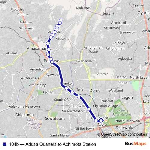 Click here to view the nearest 104b - Adusa Quarters to Achimota Station bus stop.