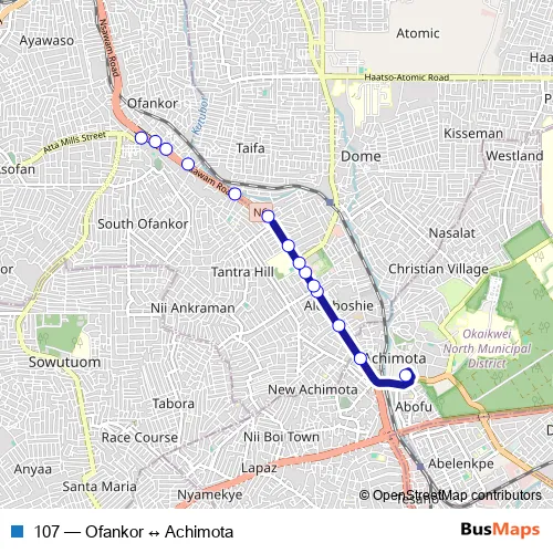 Bus 107 - Ofankor ↔ Achimota in Accra: Stops & Timetable