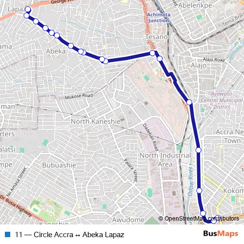 Bus 11 - Circle Accra ↔ Abeka Lapaz in Accra: Stops & Timetable
