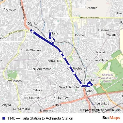 Bus 114b - Taifa Station to Achimota Station in Accra: Stops & Timetable