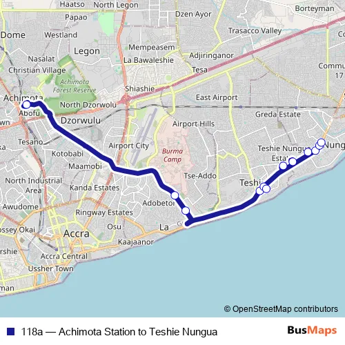 Click here to view the nearest 118a - Achimota Station to Teshie Nungua bus stop.