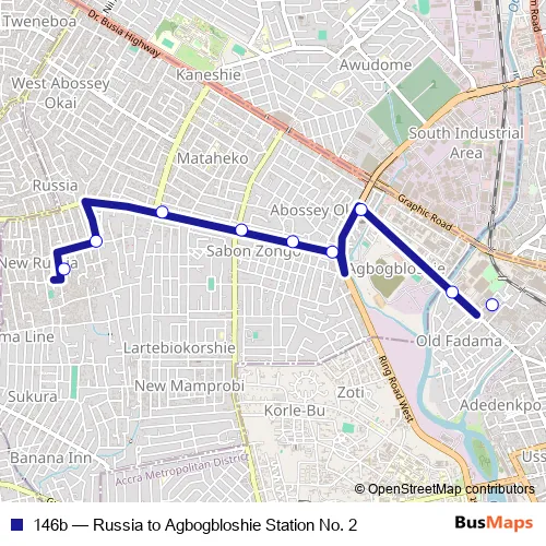 Click here to view the nearest 146b - Russia to Agbogbloshie Station No. 2 bus stop.
