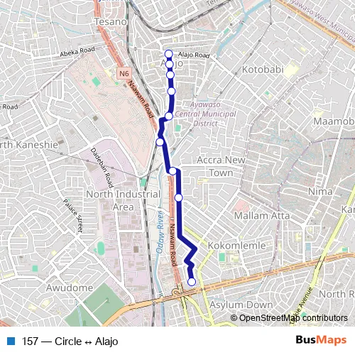 Click here to view the nearest 157 - Circle ↔ Alajo bus stop.