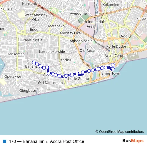AMA Department of Transport 170 Banana Inn ↔ Accra Post Office Bus