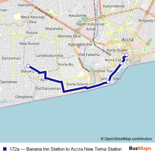 Click here to view the nearest 172a - Banana Inn Station to Accra New Tema Station bus stop.