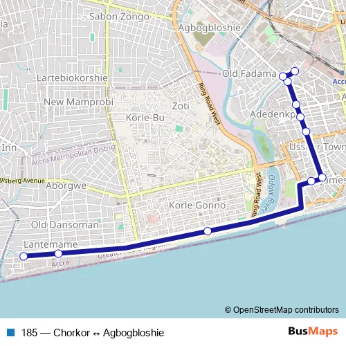 Bus 185 - Chorkor ↔ Agbogbloshie: Full Schedule in Accra